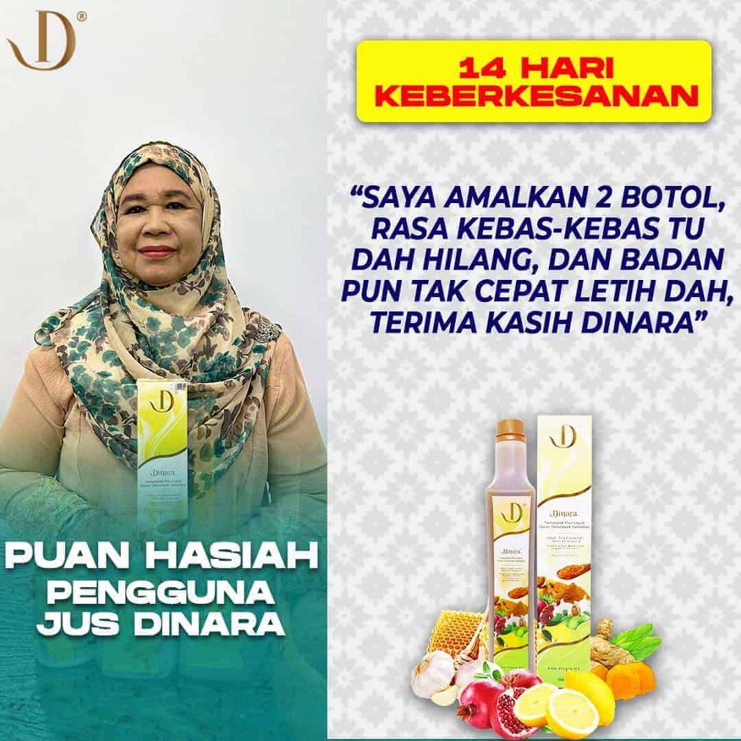 Lebih 80 ribu pengguna dah cuba dan sangat berpuas hati dengan keberkesanan Dinara . Kalau dah amalkan Dinara tapi masih tak berkesan, HQ pulangkan duit tanpa banyak soal