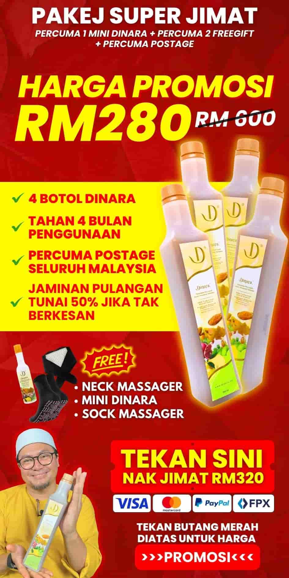 Kalau dah amalkan Dinara tapi tak berkesan, jangan risau HQ pulangkan semula duit 50% tanpa banyak soal. Ini janji kita dekat pelanggan kita